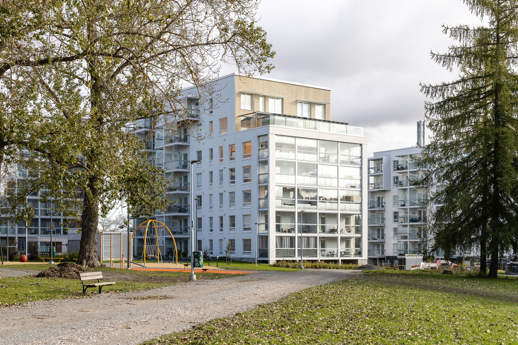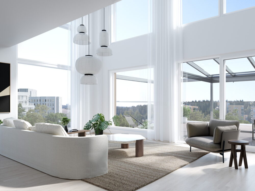 Talojen parvekkeet ovat pääosin hiljaisen sisäpihan puolella, ja asuntojen koot vaihtelevat opiskelijoiden kaupunkiyksiöistä yläkerrosten hulppeampiin näköalahuoneistoihin. Kaikista asunnoista on vähintään parvekkeelta näköyhteys puistoon. Pistetalojen erikoisuus ovat ylimpien kerrosten kaksikerroksiset, kattoterassilliset loft-asunnot.